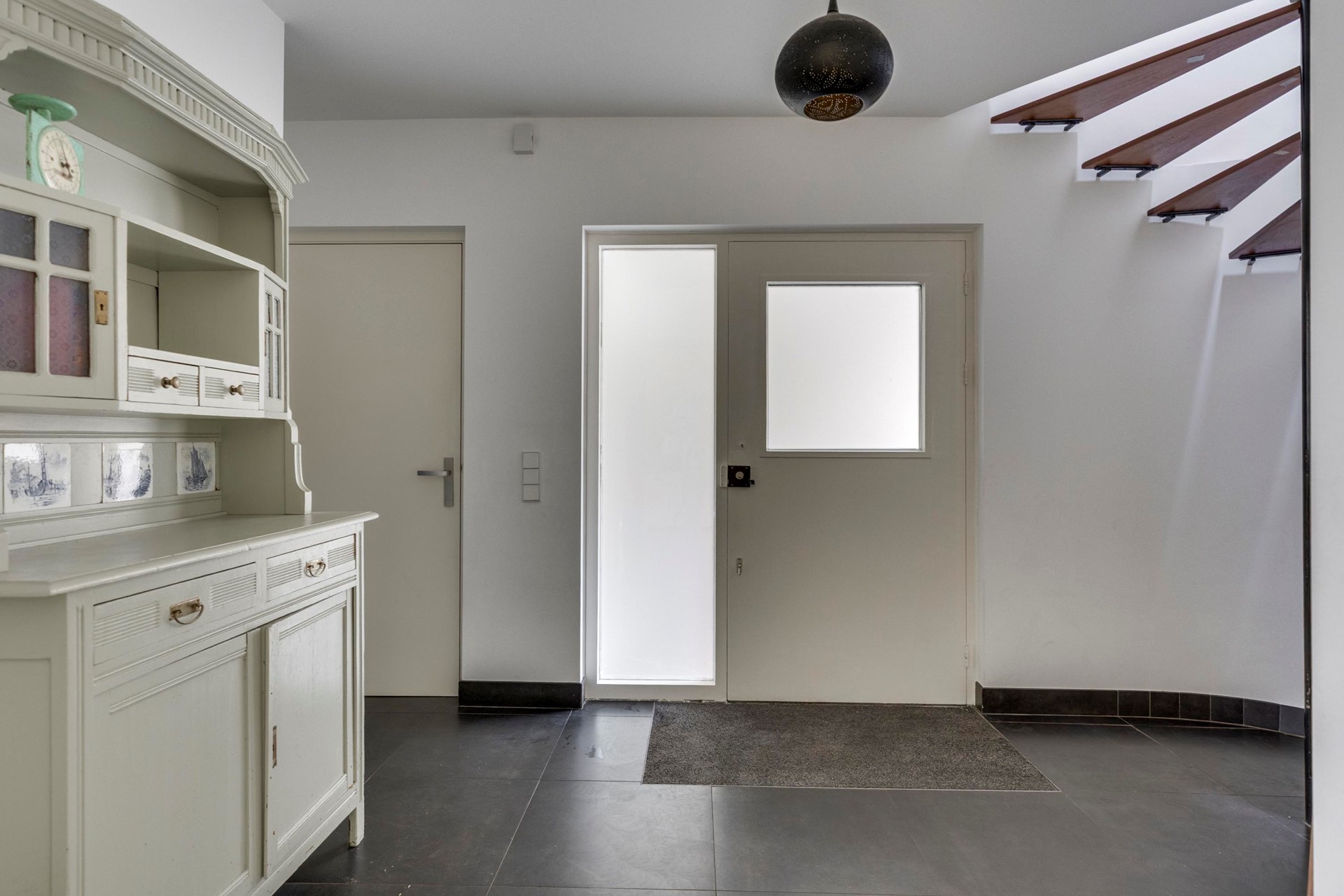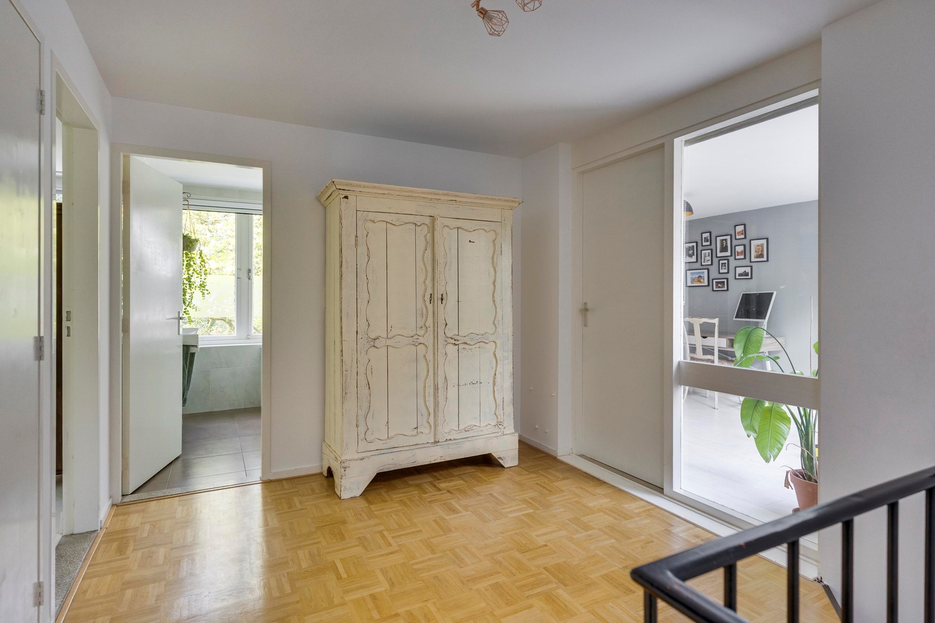 Vanuit de hal heeft u toegang tot de woonkamer én een multifunctionele werk-/speelkamer.