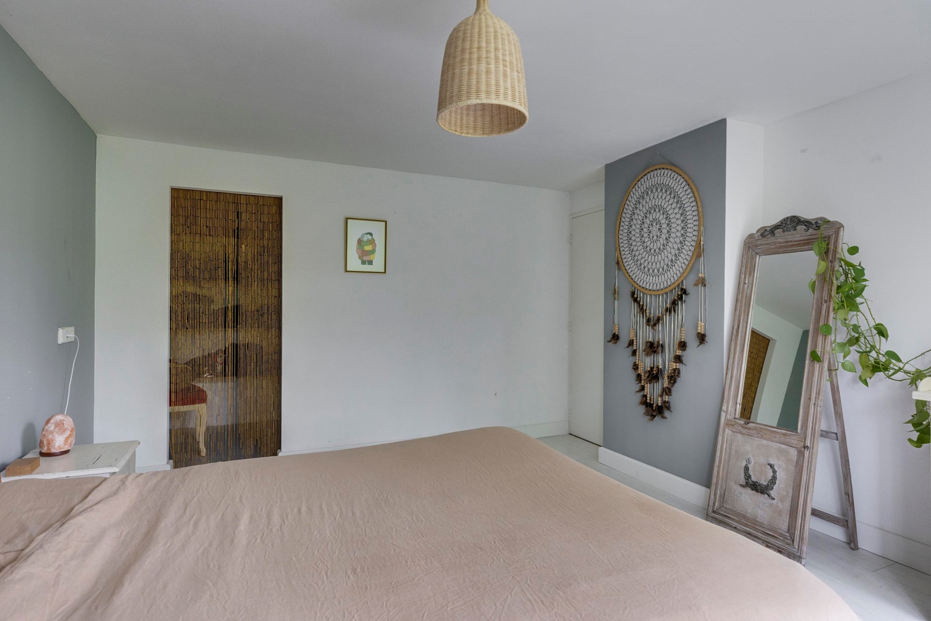 De slaapkamers zijn alle vier keurig afgewerkt met laminaat en stucwerk. Hiervan beschikt 1 slaapkamer over een walk-in closet (indien gewenst eenvoudig te verwijderen) en 1 slaapkamer biedt toegang tot de praktische was-/bergruimte met aansluitingen voor de wasapparatuur.